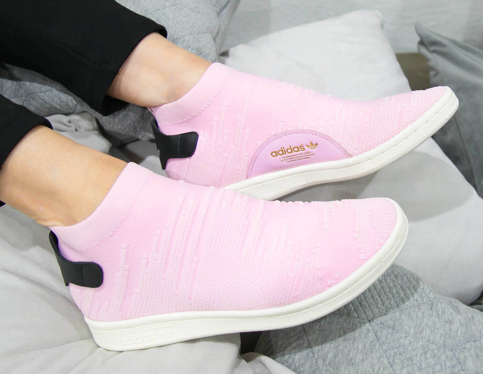 The Adidas Women's Stan Smith Sock Primeknit will be available in Wonder Pink to help up your Millennial Pink game and also an easy to wear Trace Blue in women's US5-10 including half sizes on August 10 2017 at Sole Finess.