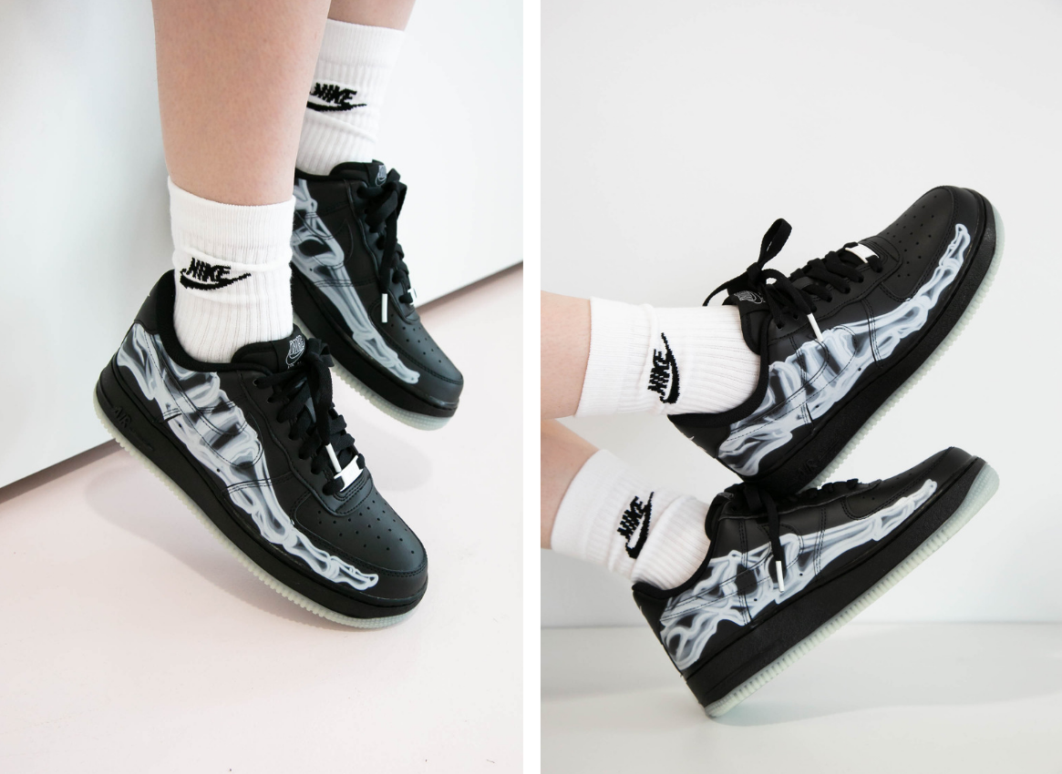 The Nike Air Force 1 '07 Skeleton Quickstrike in Black will be available at Sole Finess in women's US6-10 including half sizes on at 00:00AEDT October 25th (midnight Thursday) so you can have them just in time for Halloween.