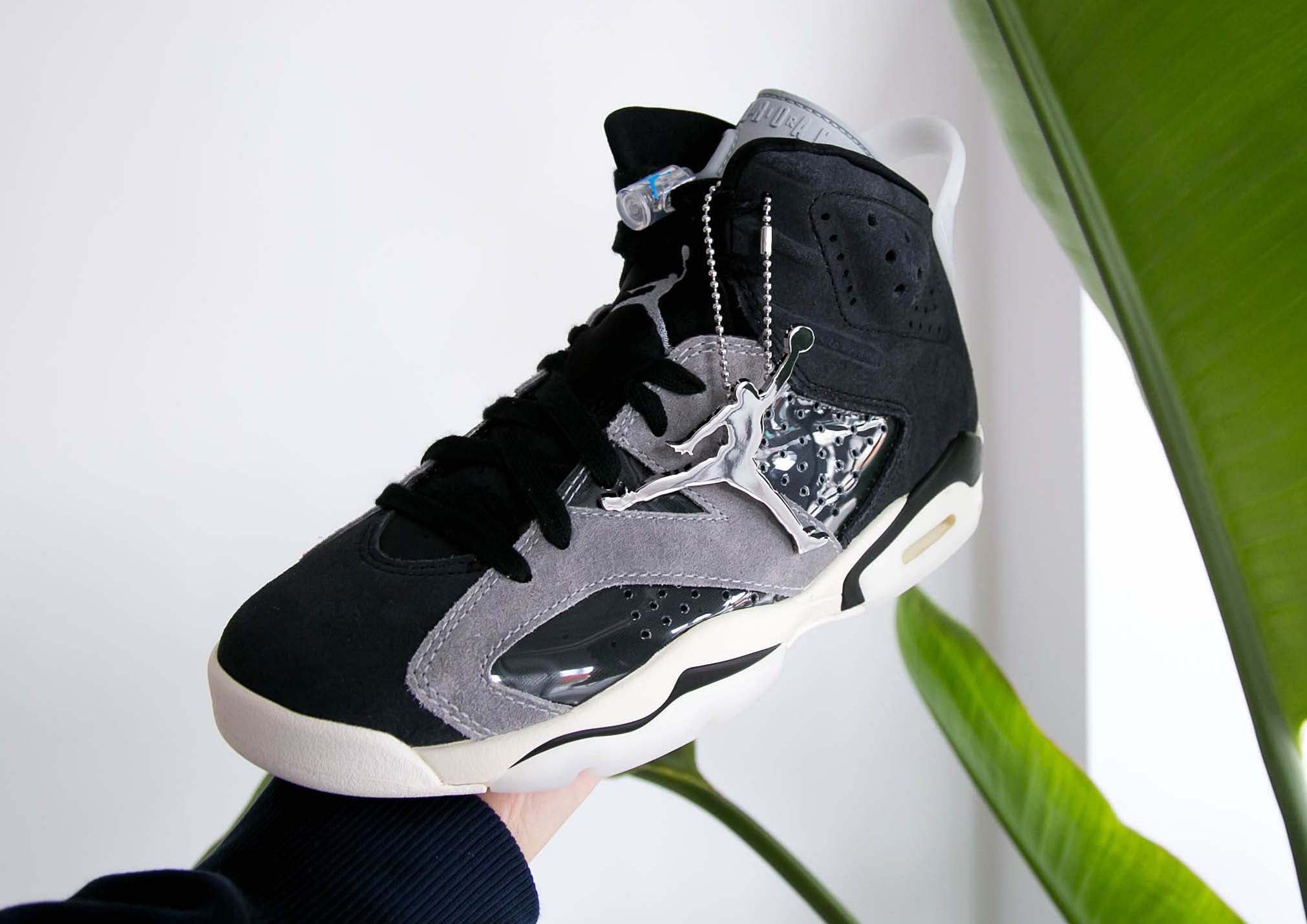 The Air Jordan 6 Retro 'Tech Chrome' women's release incorporates premium material elements rarely seen on classic Jordans.